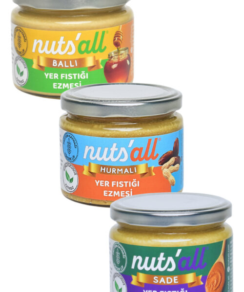 Nuts’all Tanışma Paketi (Sade – Ballı – Hurmalı Fıstık Ezmesi) 280 g x 3 Adet