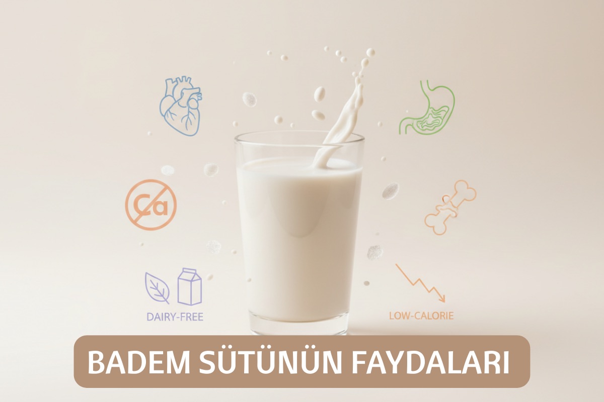 Badem sütü faydaları saymakla bitmez ve badem sütünün en belirgin özelliği, hayvansal sütlerdeki temel problem olan laktozu içermemesidir. B1 vitamini tiamin, B3 vitamini niacin, folat, B9 vitaminlerini içeren badem sütü, içerdiği kalsiyum miktarı sayesinde günlük kalsiyum alımınıza destek olur. Ayrıca kolesterol içermez. Kalp dostudur ve bağışıklığı güçlendirir. Sağlıklı beslenmek, metabolizmasının çalışmasını desteklemek ve kilo vermek isteyenlerin de sıklıkla tercih ettiği badem sütü, kolesterol dengesine yardımcı olmanın yanı sıra bağırsak sağlığı için de oldukça faydalıdır.
