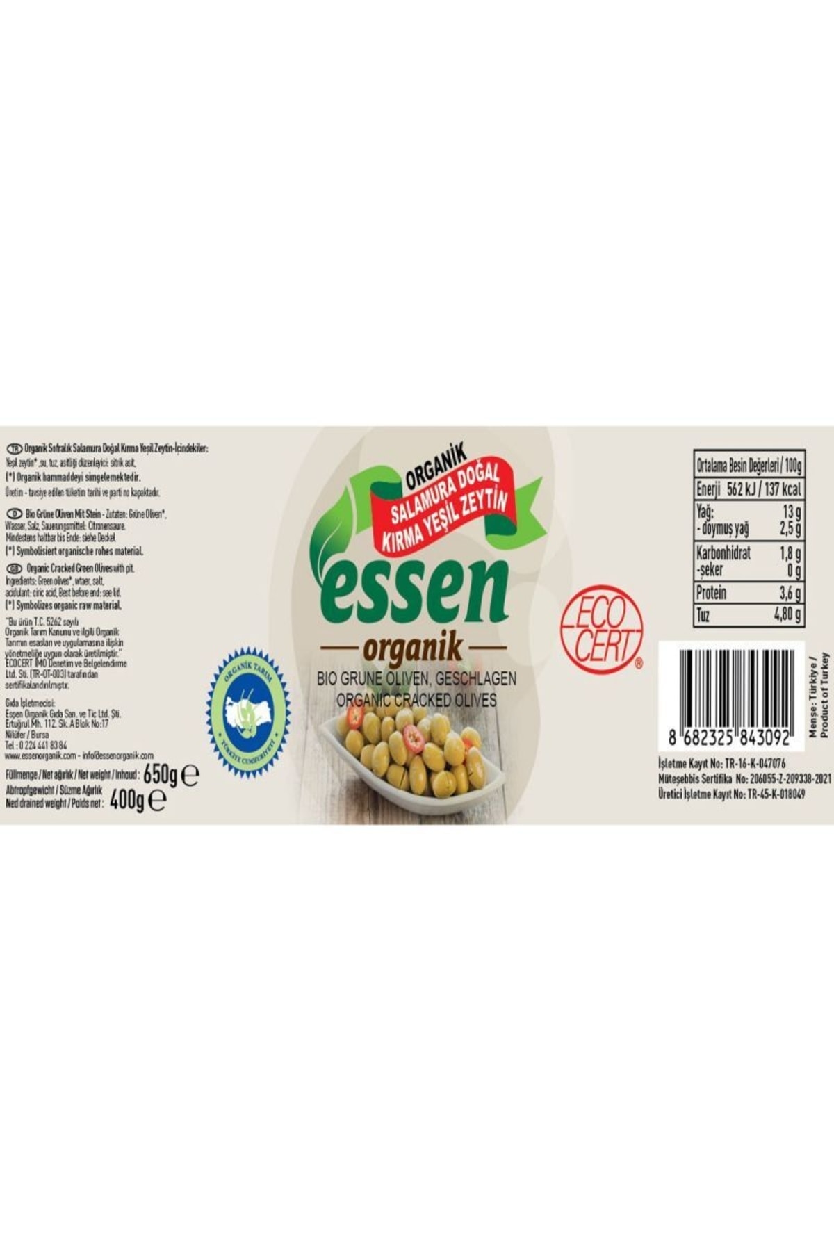 Organik Kırma Yeşil Zeytin – 660 cc