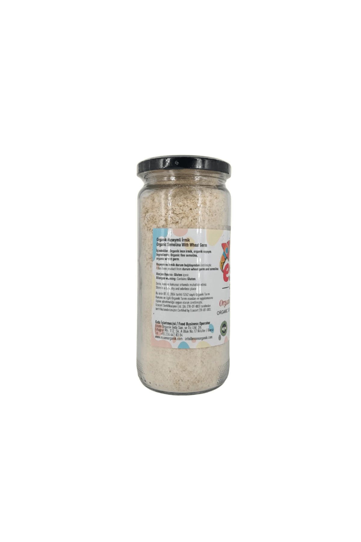 Ruşeymli İnce İrmik ; İçindekiler: Organik ince irmik, Organik ruşeym ; Net Ağırlık: 250 g ; Organik tarım insan sağlığına ve çevreye zarar vermeyen ve üretimde kimyasal girdi kullanılmadan, üretimden tüketime kadar her aşaması kontrollü ve sertifikalı tarımsal üretim biçimidir.; ; Bu ürün T.; C.; 5262 sayılı organik Tarım Kanunu ve ilgili organik Tarım Esasları ve uygulamasına ilişkin yönetmeliğe uygun olarak üretilmiştir.; ; Ecocert Sertifikalı ;