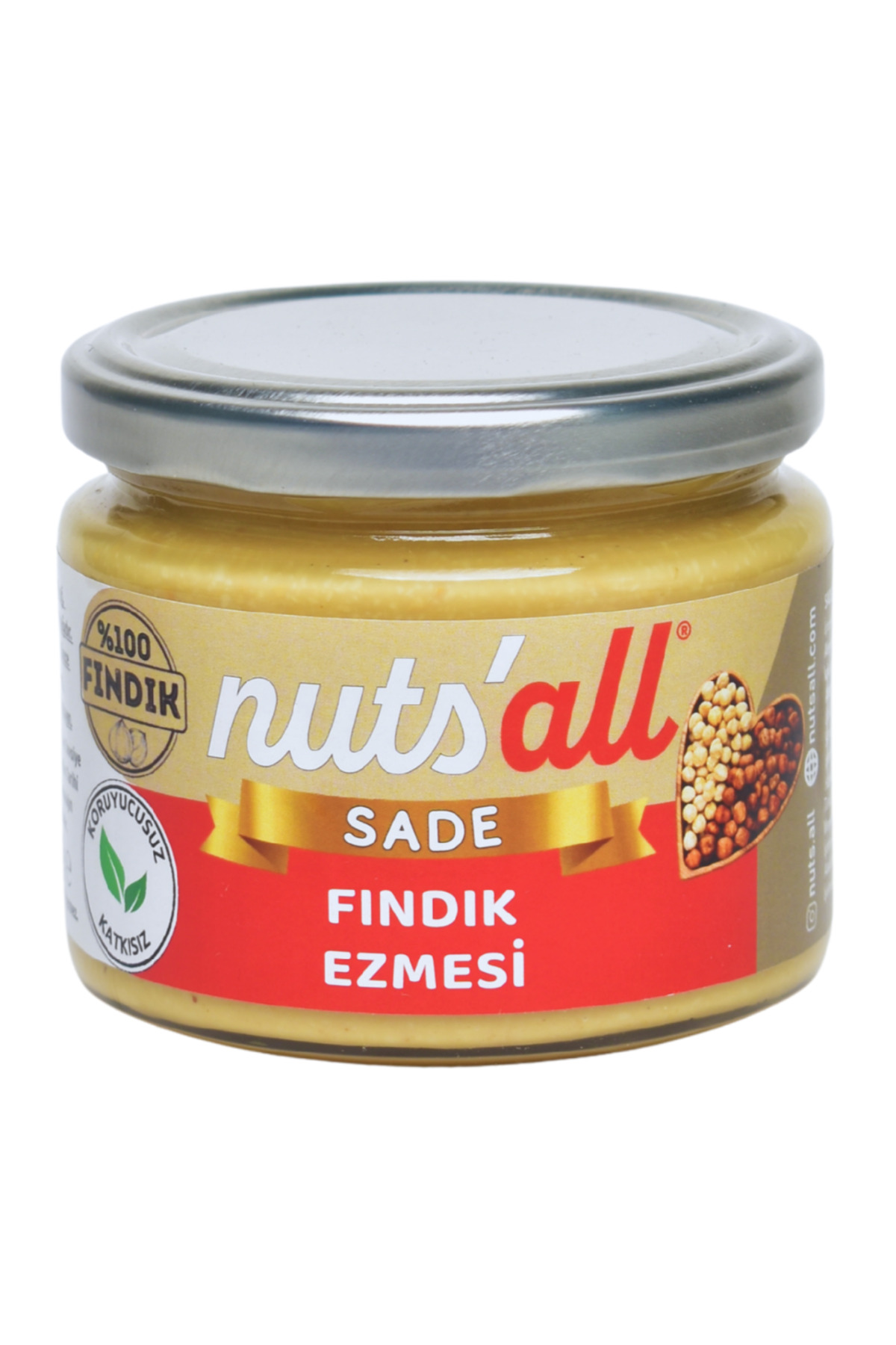 Nuts’all Şekersiz Fındık Ezmesi 280 g.; Glutensiz ve vegan beslenme tiplerine uygun.; Katkı maddesi içermez.; Tamamen doğal.; Şeker ilâvesiz.; İçindekiler: %100 Fındık.; Alerjen Bilgisi: Fındık içerir.; ; Eser miktarda yer fıstığı içerebilir.; Ürün Özel Bilgileri: Ürün üzerinde yağ ayrışması doğaldır.; ; Tüketmeden önce karıştırınız.; Serin ve kuru ortamda muhafaza ediniz.; Türk Gıda Kodeksine uygun üretilmiştir.; %100 doğal, sağlıklı, içeriğinde herhangi bir katkı, koruyucu, rafine şeker, tatlandırıcı ve krema bulunmaz.;
