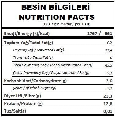 Yağ ayrışması doğaldır, tüketmeden önce karıştırınız. Serin ve kuru ortamda muhafaza ediniz.